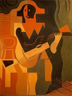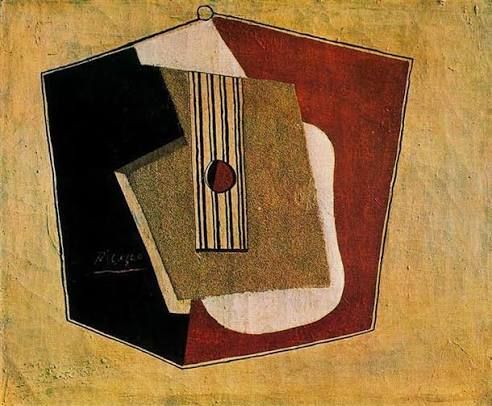 The abstract movement in early 20th century art often seemed to use stock figures, and the guitar seems to come up frequently. I believe artists used the familiar and sensual (in the feminine form of the curves), shape of the guitar because it was easy to recognise. Artists could therefore demonstrate their own interpretation of the instrument’s form in order to encourage the viewer into looking at these forms & shapes in new ways.