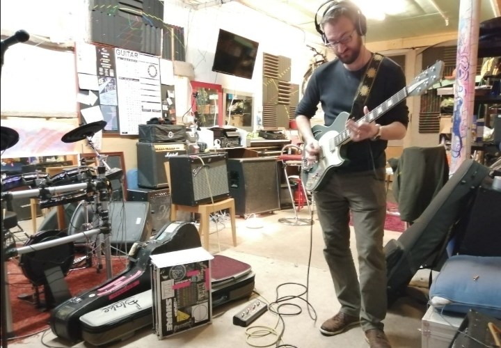 Recording lapsteel and 12-string acoustic at The Space, Carlisle (credit: John Timney)